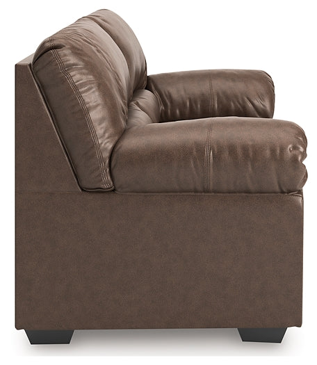 Modern comfort never looked so good. Sporting supremely soft yet durable cushions accented with high-fashion jumbo stitching, this stunning loveseat is the ultimate choice in comfortably cool, contemporary style. Its caramel-hued faux leather indulges with an upscale feel and wows like the real thing.